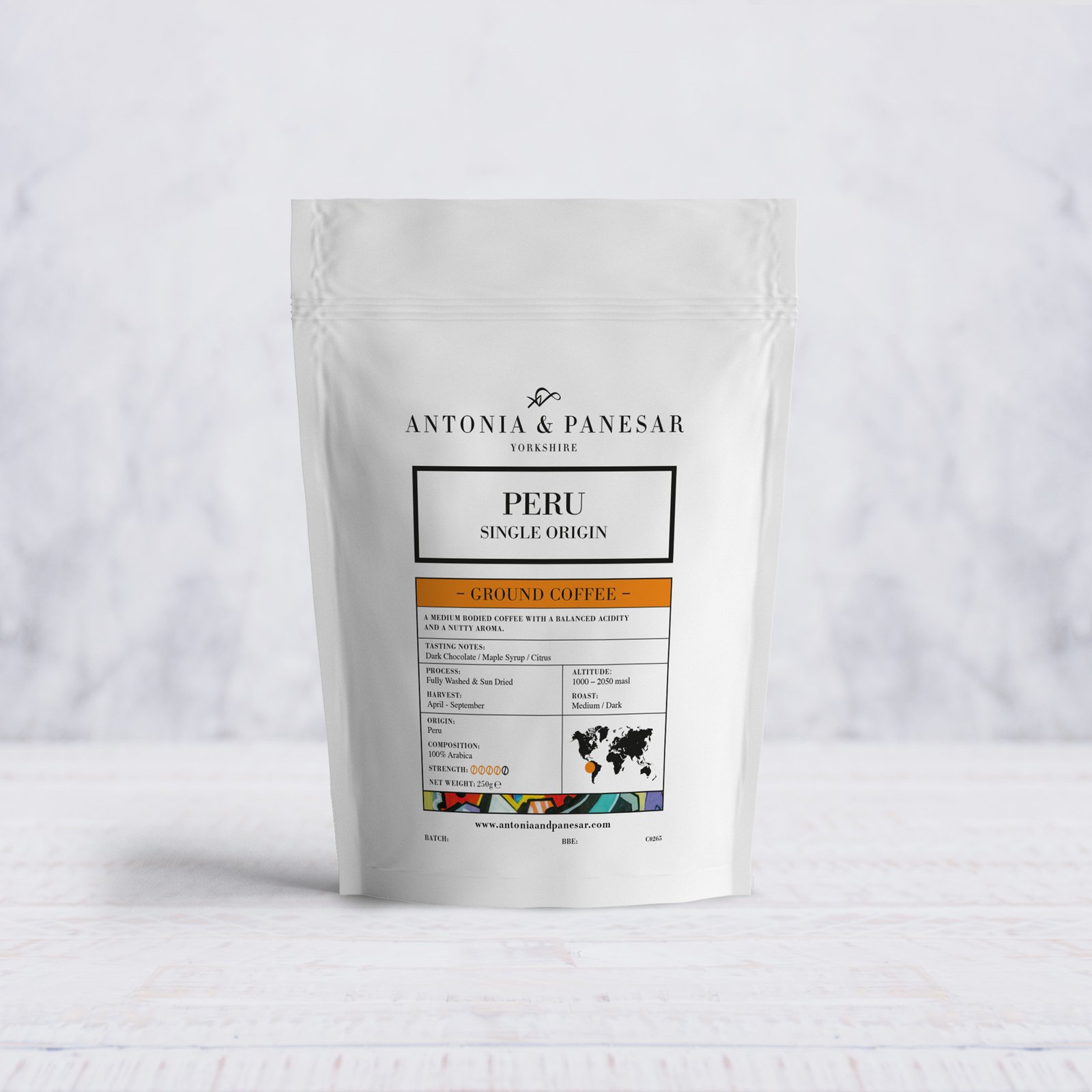 Revel in the deep, complex flavours of Peru with this beautifully balanced ground coffee. Roasted to a medium–dark profile, it brings together rich dark chocolate and smooth maple syrup sweetness, lifted by bright citrus notes for a clean, refined finish. A gentle nutty aroma and balanced acidity make every cup satisfying and versatile—equally enjoyable as a comforting morning brew or a rich, flavourful afternoon pick‑me‑up.